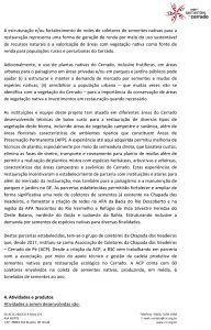 A Rede de Sementes do Cerrado, para a execução do projeto “Mercado de Sementes e Restauração: Provendo Serviços Ambientais e Biodiversidade” (contrato Nº 100450, CEPF), está contratando serviço técnico especializado para realização de DIAGNÓSTICO DO PROCESSO DE GESTÃO DE NEGÓCIO SOCIOAMBIENTAL, IMPLANTAÇÃO DE MELHORIAS PÓS-DIAGNÓSTICO E ELABORAÇÃO DE PLANO DE NEGÓCIOS, conforme Termo de Referência abaixo.
