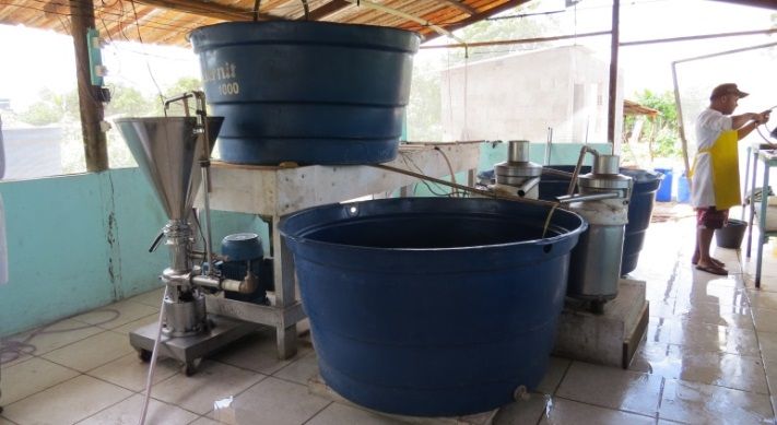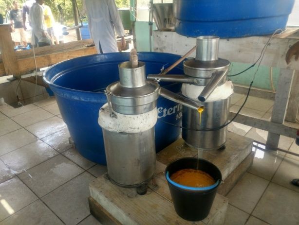 Acompanhamento de seis extrativistas. Foi observado todo o processo de coleta, roletagem, beneficiamento e armazenamento do pequi com os coletores que fizeram o beneficiamento no mesmo dia da coleta. Acompanhamento das atividades da “fábrica” da RTK, que foi montada em galpão, na primeira semana de janeiro de 2018, passando a comprar e beneficiar caroços de pequi a partir do dia 11, para extração da polpa para o beneficiamento primário do óleo.