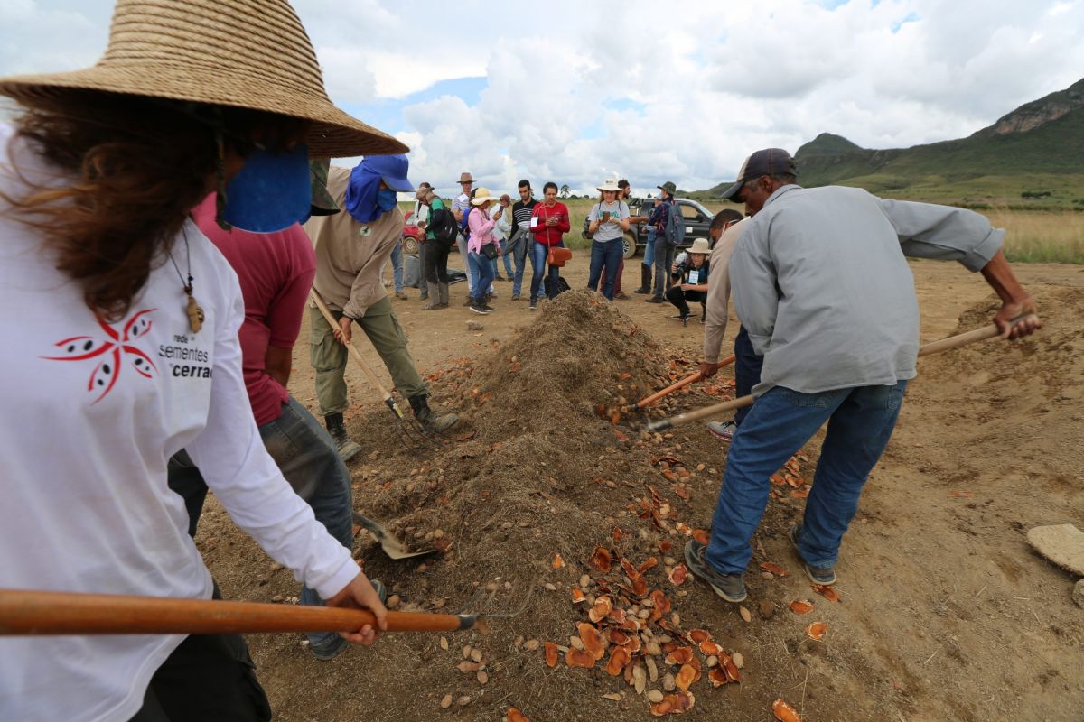 Com espécies de gramíneas, arbustos e árvores necessárias para restaurar um 1hectare, a equipe da RSC detalhou como realizar a Muvuca, que consiste na mistura das sementes com terra. Na demonstração foram utilizadas sementes de capim-andropogon-nativo, capim rabo-de-burro, amargoso, fedegosão, cajuí, maria-preta, mirindiba. Após a explicação técnica, de forma rápida e prática, foi mostrado aos participantes como é feito o plantio com o uso de maquinário.