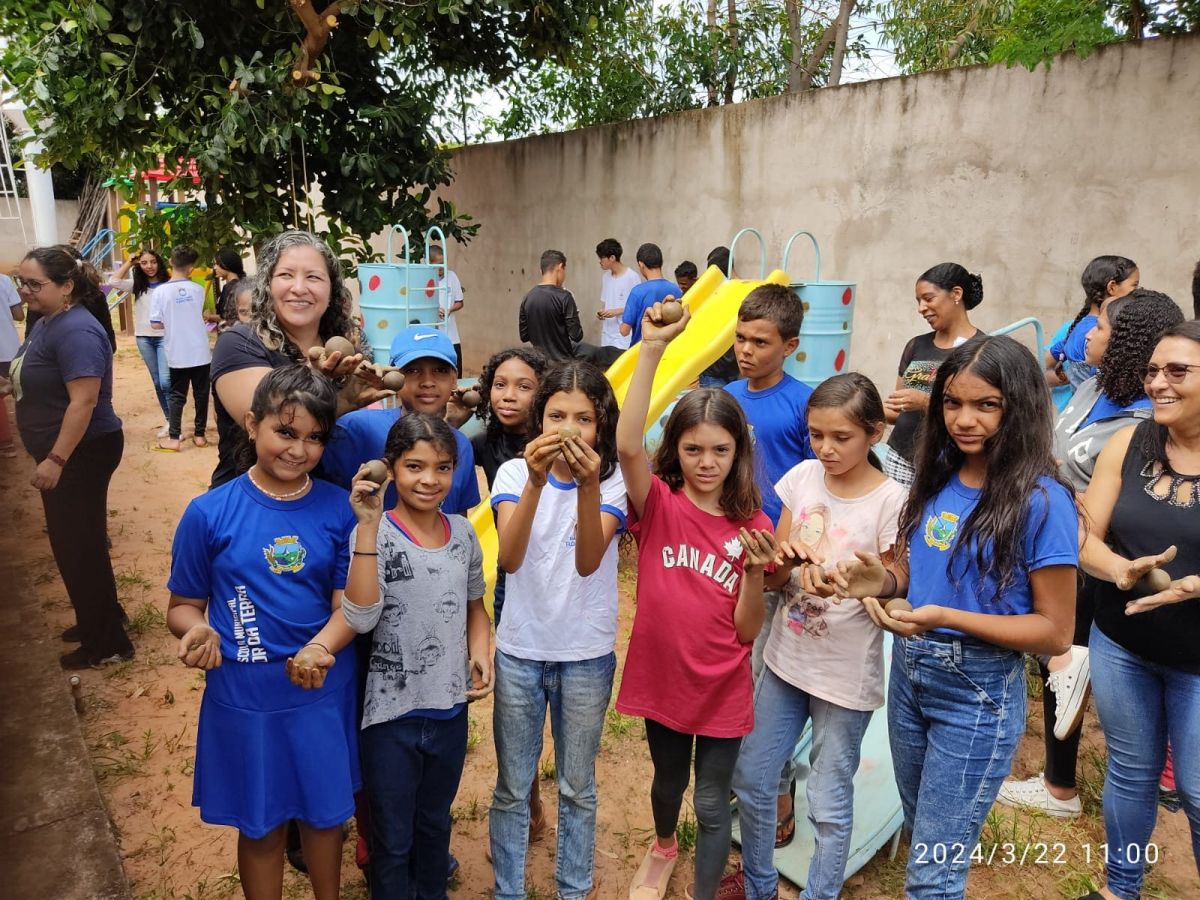Após a exibição do filme, os alunos são apresentados às diferentes espécies de plantas do Cerrado entendendo a importância de cada uma dessas espécies para o ecossistema local. De acordo com Giselle Moreira, Consultora em Educação Ambiental, a parte prática da oficina envolve a confecção de bolas de sementes. Com argila em mãos, os alunos são orientados a moldar pequenas bolas, que servirão como proteção para as sementes até o momento propício para germinação, que é durante o período chuvoso. A argila atua como uma barreira protetora contra predadores e condições adversas, garantindo a sobrevivência das sementes.