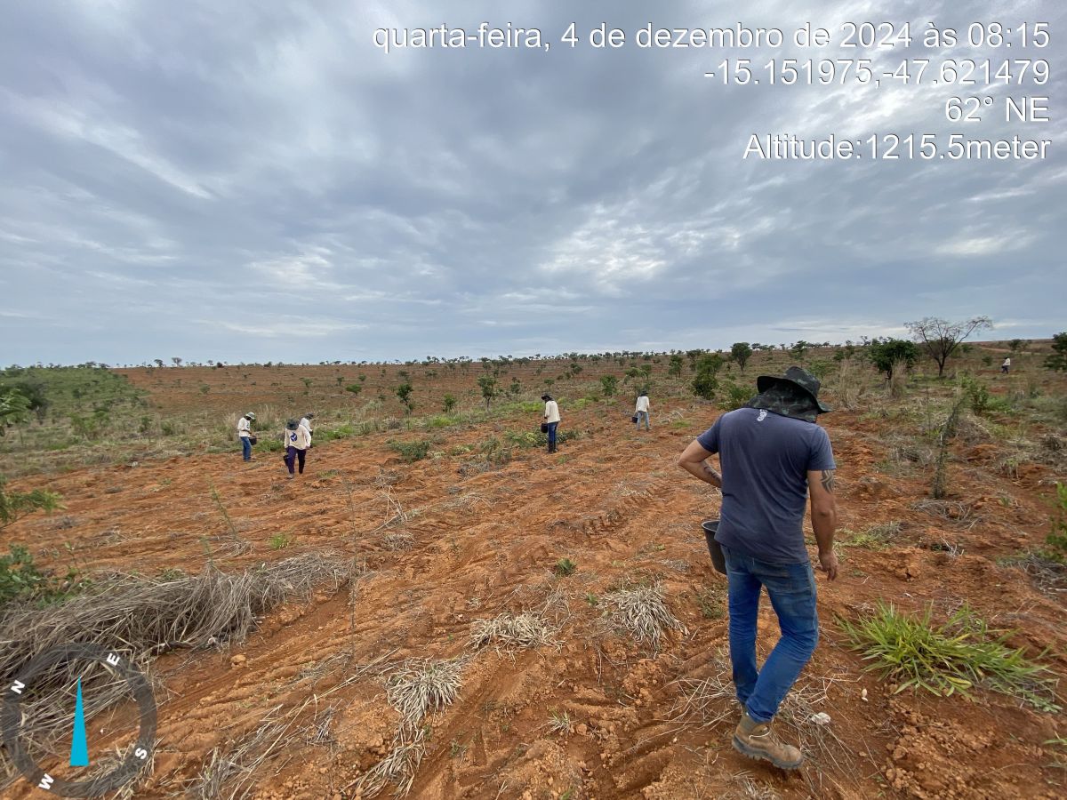 As atividades no Assentamento Flor da Serra foram iniciadas em 2023, com o controle das Espécies Exóticas Invasoras (EEI) e o preparo do solo. “De 33,68 ha, 32,52 ha trata-se de restauração ecológica de cerrado sentido restrito em área total com preparo de solo mecanizado. 1,16 ha de restauração ecológica de campo sujo em área total com controle de espécies exóticas e plantio manual. A área já possui uma incipiente vegetação arbórea-arbustiva presente devido a regeneração natural, assim durante o preparo do solo as espécies com maior porte foram preservadas”, explicou a gerente de restauração.