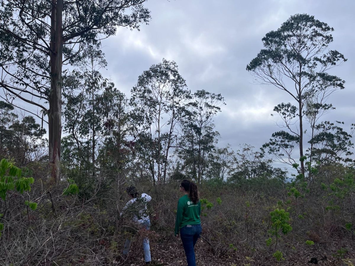 Para avaliar uma nova área de restauração que será incluída na terceira fase do projeto[Nome do projeto], a equipe esteve em São João do Paraíso. A iniciativa será desenvolvida em parceria com a Cargill. Durante a visita, segundo Jimena Stringuetti, foi observado o potencial de regeneração natural da área, apesar da presença de eucaliptos, que serão removidos conforme o acordo previsto com o proprietário da terra. “O local, apesar dos desafios impostos pelos eucaliptos, apresenta um grande potencial de recuperação natural, o que nos traz boas perspectivas para a terceira fase do projeto”, acrescentou a Coordenadora do Núcleo de Projetos.