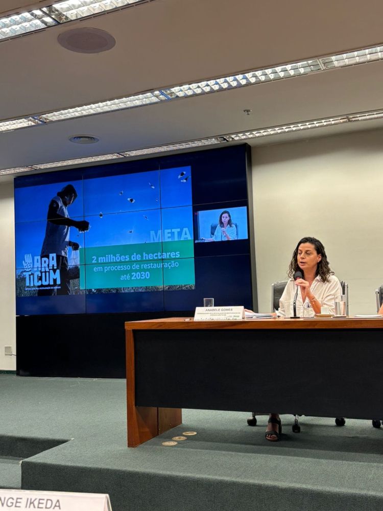 A Comissão do Meio Ambiente e Desenvolvimento Sustentável da Câmara dos Deputados realizou, nesta quinta-feira, 28, uma audiência pública para debater a criação do Dia Nacional da Restauração de Ecossistemas, proposto para ser celebrado em 19 de novembro. Representando a Articulação pela Restauração do Cerrado (Araticum), a presidente da Rede de Sementes do Cerrado (RSC), Anabele Gomes, participou das discussões, junto com representantes das demais redes biomáticas brasileiras. Na ocasião, foram abordados temas como os desafios e as estratégias de restauração de áreas degradadas, destacando a necessidade de políticas públicas mais robustas e de mecanismos financeiros que incentivem iniciativas de restauração.
