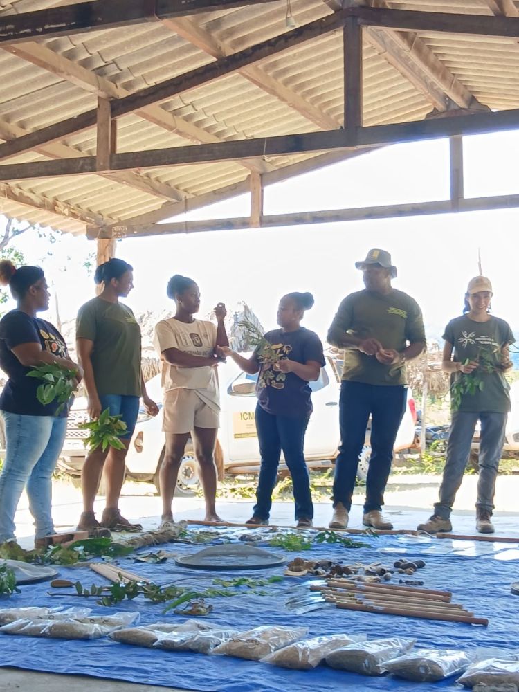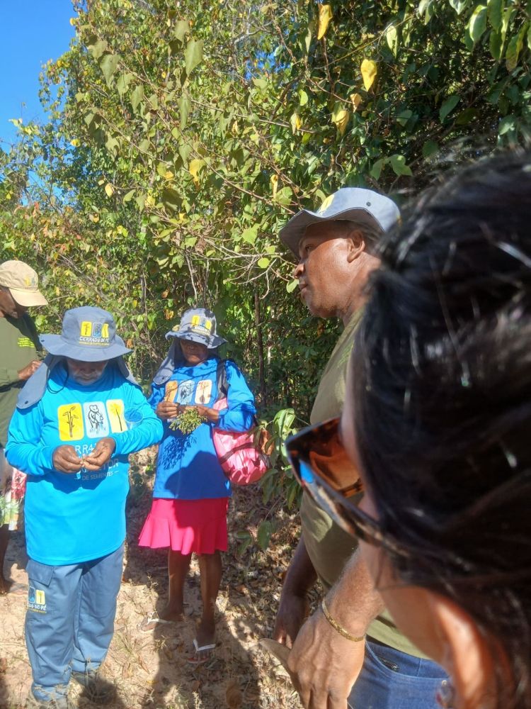 A formação incluiu um dia de campo, no qual foram tiradas dúvidas sobre as espécies já trabalhadas e identificadas duas novas espécies de arbustos a serem inseridas na lista de coletas. “A condução prática ficou por conta de coletoras experientes e instrutoras locais, fortalecendo o protagonismo comunitário no processo formativo”, disse Natanna Horstmann.