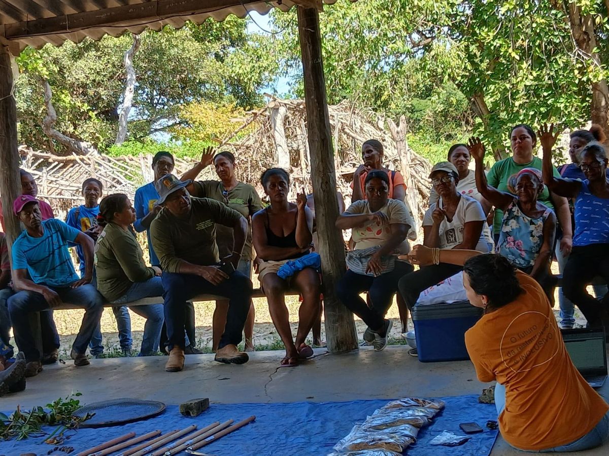 Durante a visita, foi realizada também uma capacitação voltada à coleta de capins e arbustos, que contou com a participação de cerca de 50 pessoas da comunidade. A atividade teve como foco a identificação de novas espécies, a padronização de técnicas de coleta e o planejamento das coletas ao longo do ano.