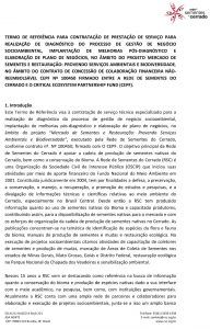 A Rede de Sementes do Cerrado, para a execução do projeto “Mercado de Sementes e Restauração: Provendo Serviços Ambientais e Biodiversidade” (contrato Nº 100450, CEPF), está contratando serviço técnico especializado para realização de DIAGNÓSTICO DO PROCESSO DE GESTÃO DE NEGÓCIO SOCIOAMBIENTAL, IMPLANTAÇÃO DE MELHORIAS PÓS-DIAGNÓSTICO E ELABORAÇÃO DE PLANO DE NEGÓCIOS, conforme Termo de Referência abaixo.