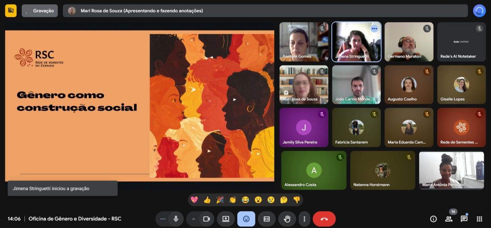A Rede de Sementes do Cerrado (RSC) realizou, com a equipe de trabalho, nesta terça-feira (23), uma das oficinas do ciclo de debates sobre inclusão e diversidade. Com o tema Gênero como construção social: normas, poder e possibilidades, a atividade integra o plano de ação de gênero da RSC, que por sua vez compõe a Política de Gênero da instituição, em alinhamento ao projeto Governança Feminina que está sendo executado com apoio do CEPF por meio do Instituto Internacional de Educação do Brasil (IEB).